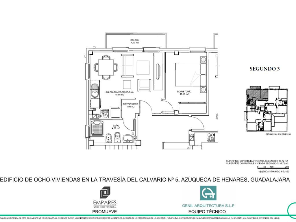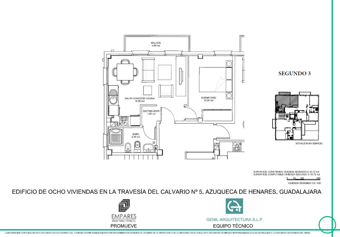 'TECNOCASA AGENCIA INMOBILIARIA DE AZUQUECA DE HENARES, ZONA ESTACIÓN, VENDE PISO DE OBRA NUEVA SOBRE PLANO compuesto por 1 dormitorio, baño completo con ducha y ventana, y salón muy luminoso debido a sus grandes ventanales con cocina americana, y acceso a un balcón de 4 m2 a 10 minutos del Ayuntamiento y Centro de especialidades, y rodeado de todo tipo de comercios y servicios con una superficie total de 51 m2 construidos.